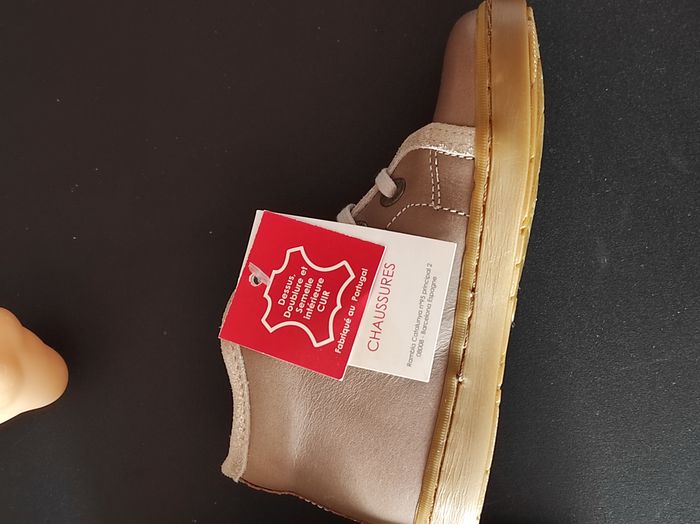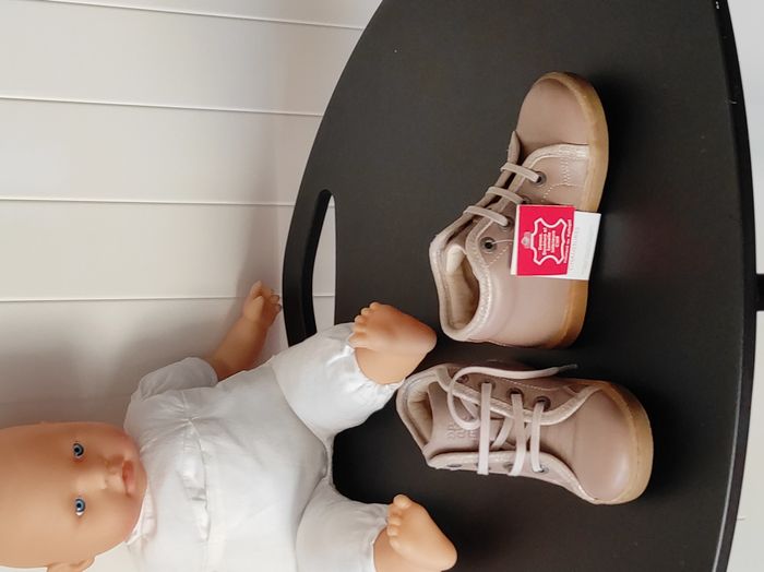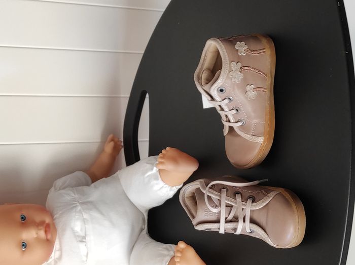 Chaussures montantes fille pointure 24 – cuir beige, motif fleurs NEUVES - photo numéro 5