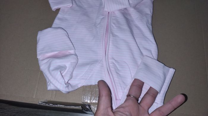 Pyjama léger oeko-tex avec moufles et pieds amovibles. Fermeture éclair sur le devant jusqu'au pieds