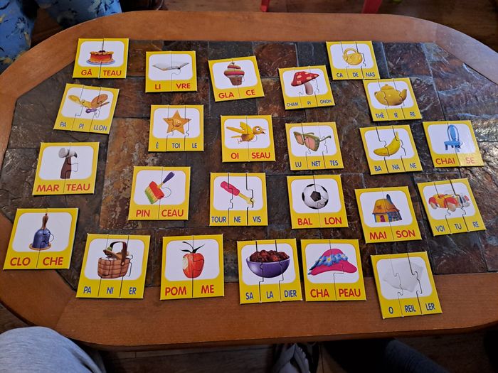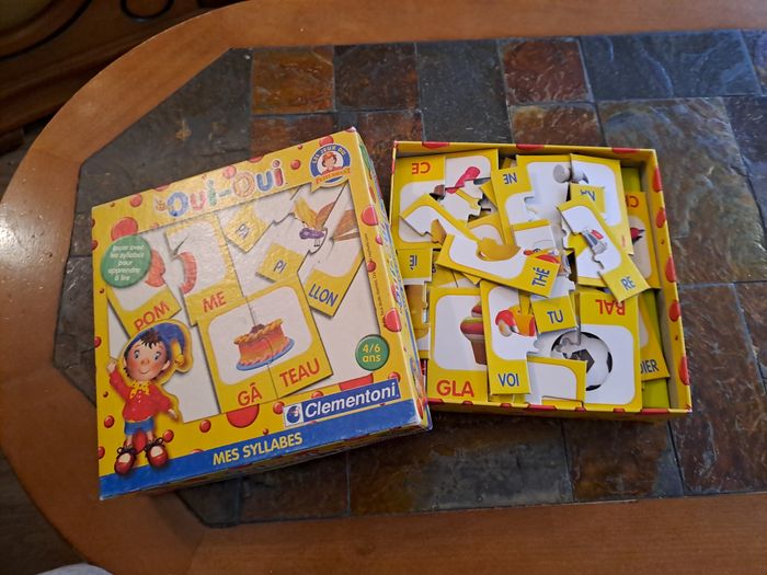 Jeu Oui Oui Mes syllabes. Complet. Papier enlevé sur le dos d'une tuile, mais n'empêche pas de jouet (voir photo).