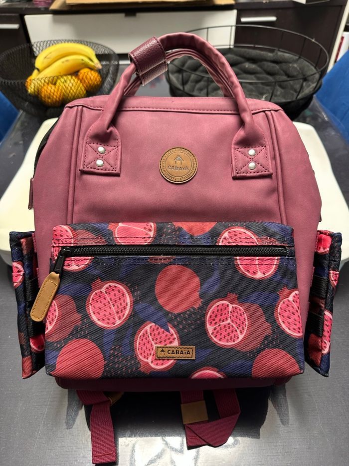Sac à dos Cabaïa, ancien modèle Delhi, effet nubuck, taille S - Dimensions (10L) : 23cm x 32cm x 13cm, modèle Delhi, en très bon état. Vendu avec ses 2 pochettes frontales d’origines : bordeaux unie (Agrasen Ki Baoli) en bon état + bleu marine à motifs (Lodhi Gardens) état neuf + les 2 pochettes latérales assortis à la pochette à motif. + lot de pochettes état neuf à voir sur photo. Le sac en lui même a quelques traces usures sur la partie effet nubuck: visible sur photo, le similicuir en dessous du sac est impeccable et la pochette frontale bordeaux unie (Agrasen Ki Baoli) a des traces d’usure sur les 4 coins (voir photos)