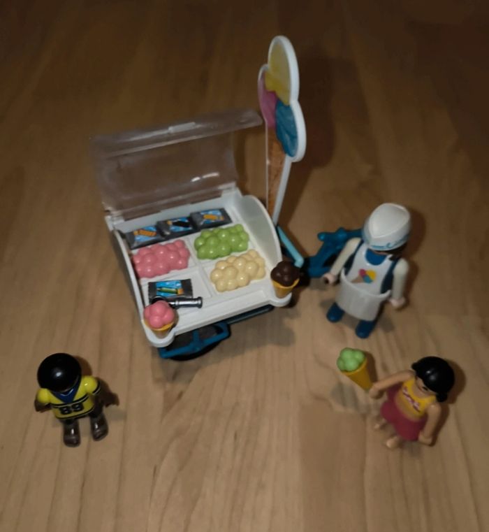 Je vends cet article Playmobil le glacier manque quelques accessoires mais bon état général. Envoie rapide et soigné
