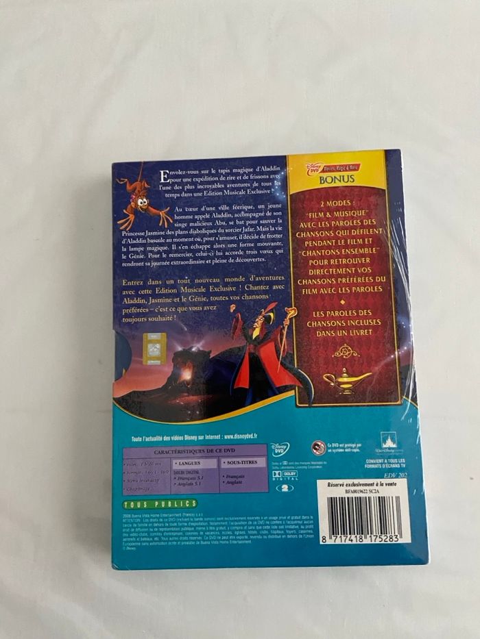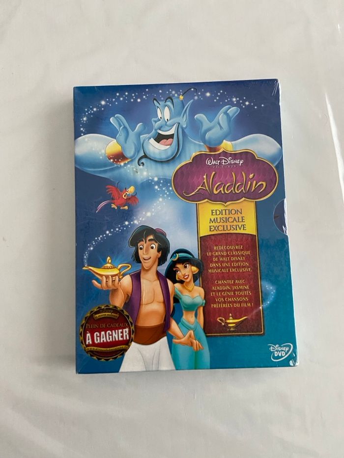 Je vends le DVD Aladdin de Disney, neuf, jamais ouvert.