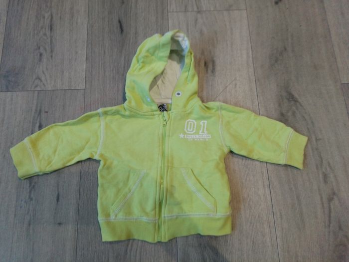 Lots de gilets diverses marque dont un Verbaudet. Très bon état sauf le gilet vert pistache qui a une tâche sur une poche comme sur la photo.