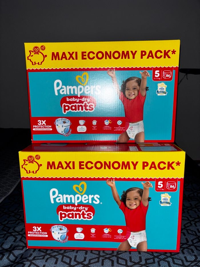 Lot de 2 Maxi Pack de 86 Couches Pampers  Baby-Dry Pants Culotte Neuf Dans L’emballage Taille: 5