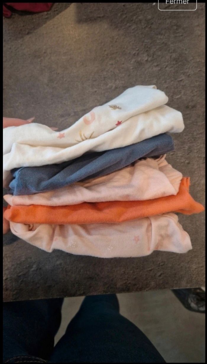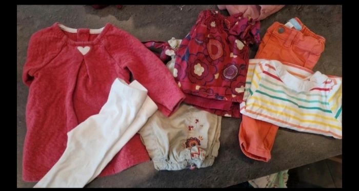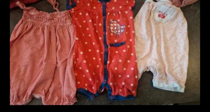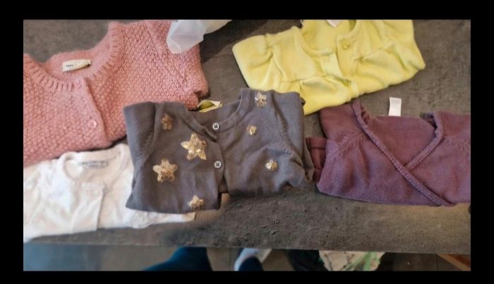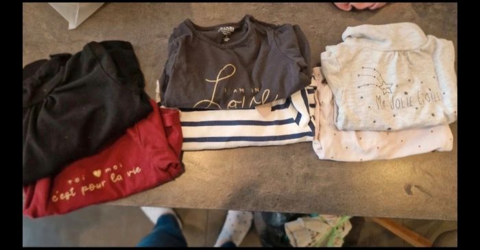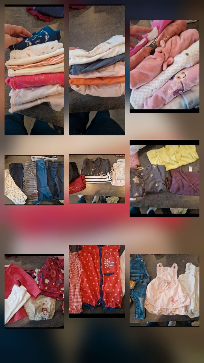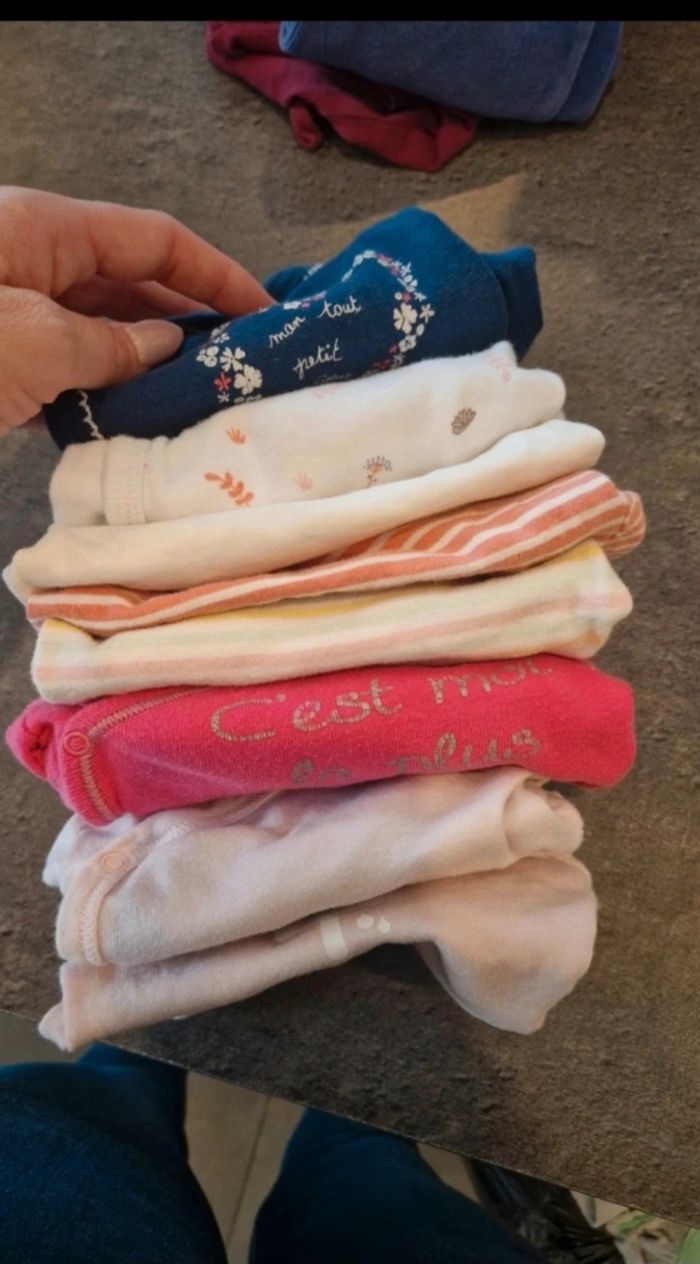 Lot 3 mois 59/60 cm en très bon état. 8 body manche longue, 6 body manche courte, 6 pyjama , 7 bas , 6 haut, 5 gilet, 3 ensemble, 3 barboteuse, 4 robes et une salopette.