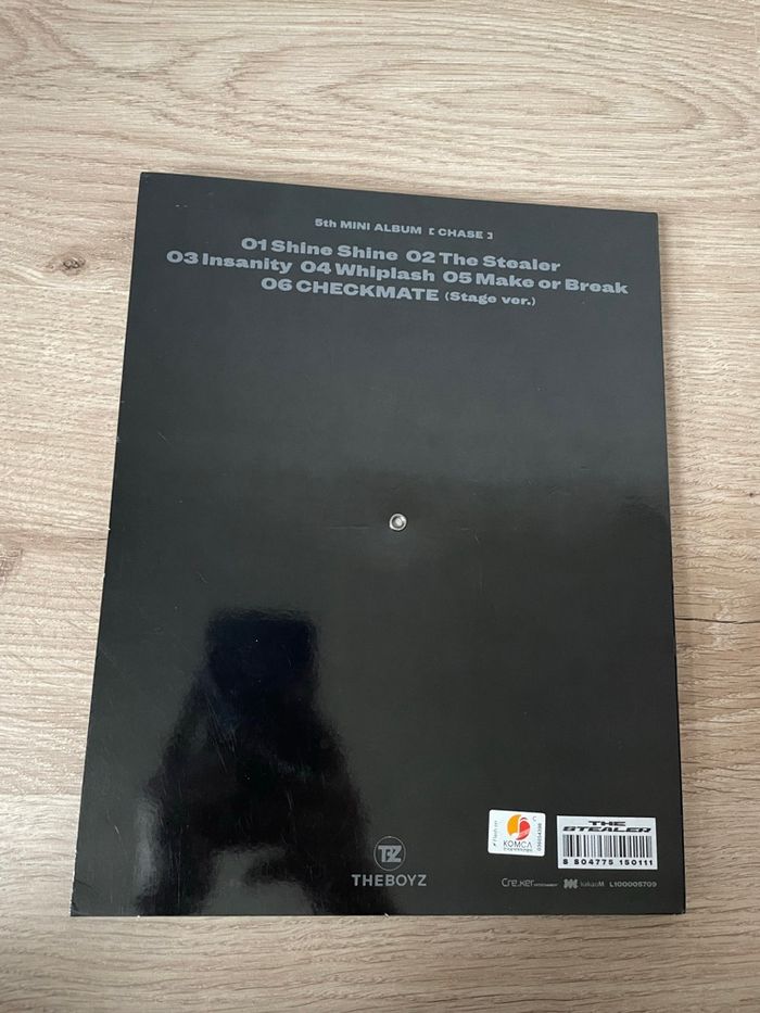 vnted et leboncoin : woosanra beebs : floraritz 📓 album Chase 👥 The Boyz #woosanraTHEBOYZ 🗂️ version Stealer (noire) 📔 complet avec composition au choix: - 2 pc au choix ✅chanhee ✅kevin ✅sunwoo ✅changmin ✅hyunjae x2 - 1 lenticular photocard ✅ changmin ✅chanhee ✅hyunjae - 1 ticket photocard ✅chanhee ✅juyeon ✅sangyeon - 1 postcard ✅ juyeon x2 ✅chanhee 🔎 très bon état sauf sur le cercle il y a une grosse rayure. ➕ les 2 autres versions aussi dispo dans mon dressing