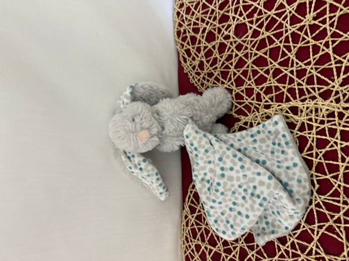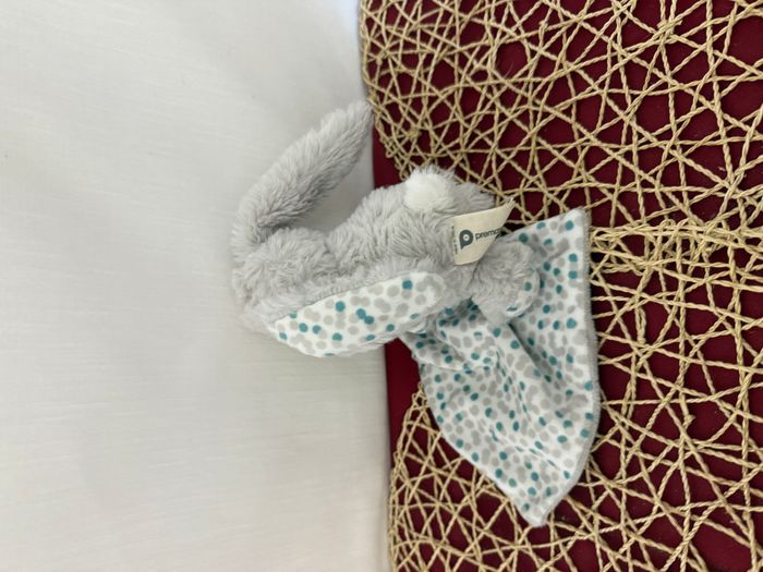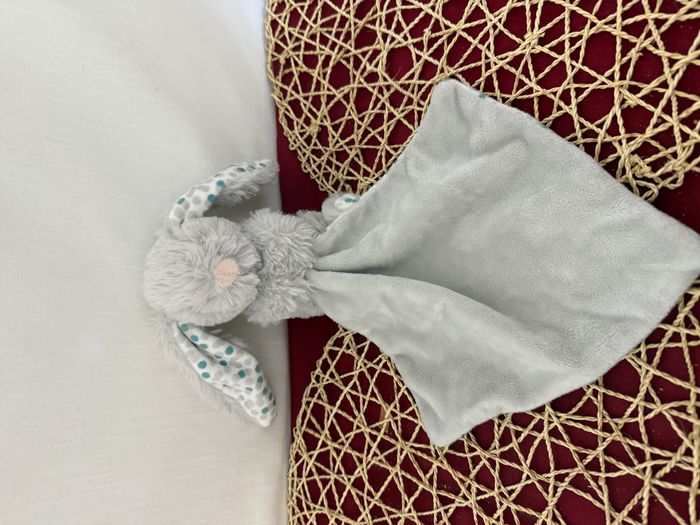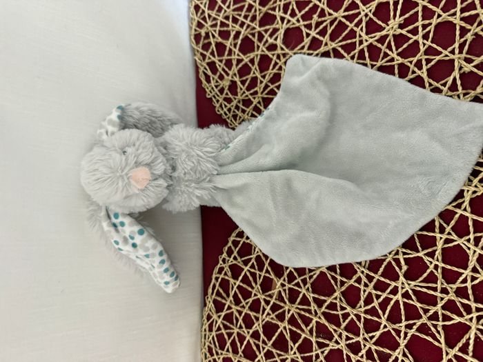 Peluche lapin mouchoir  pois Prémaman bleu vert gris rose Orchestra - photo numéro 5