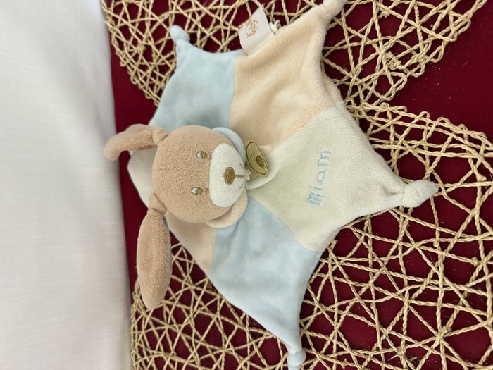 Lapin BABY NAT' doudou beige et bleu plat étoile Miam - photo numéro 1