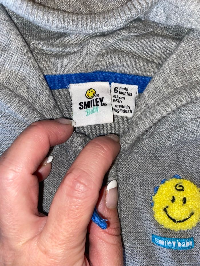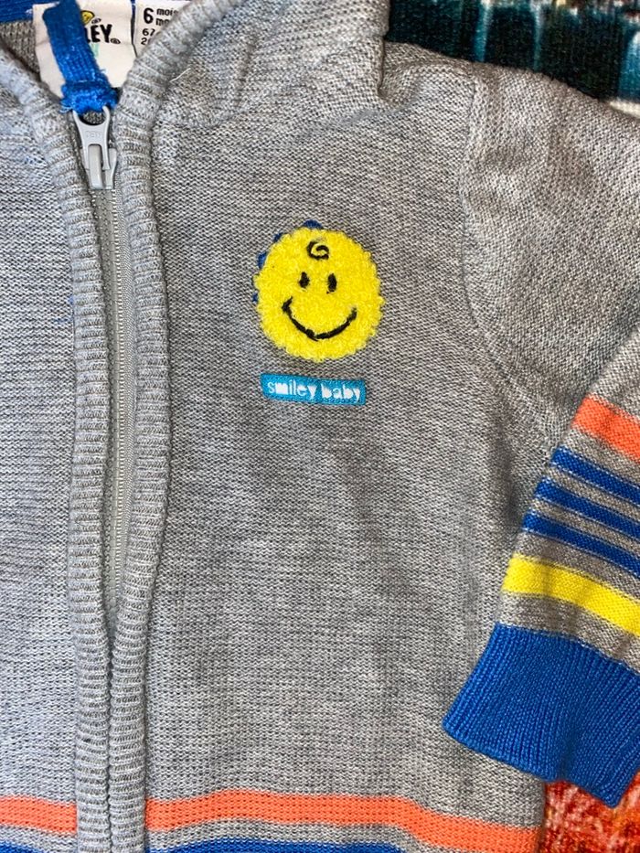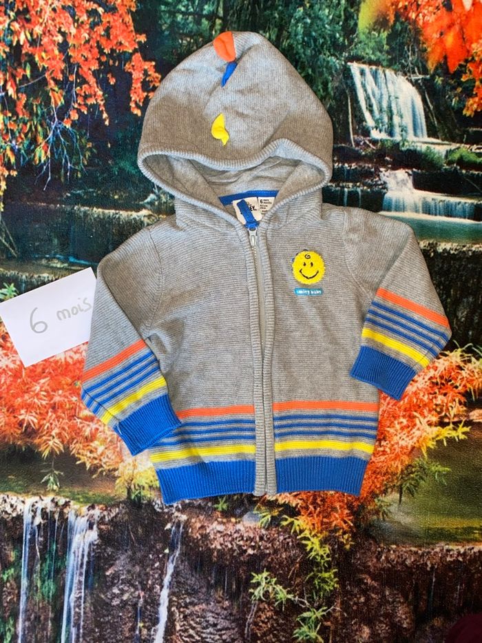 Gilet Smileet Baby – 6 mois – Hiver 🧵 Gilet zippé gris, orange et jaune avec petit 🙂 sur le devant 📍 Capuche à petites écailles 🦖 – neuf, juste lavé 💬 Doux, chaud et super pratique pour l’hiver ❄️ 🎁 Réductions automatiques sur les lots activées 🤝 Offres raisonnables acceptées 🏷️ #6mois_nasta37 #vetementbebe #hiver #gilet #smileetbaby #garcon #lookbebe #chaud #douillet