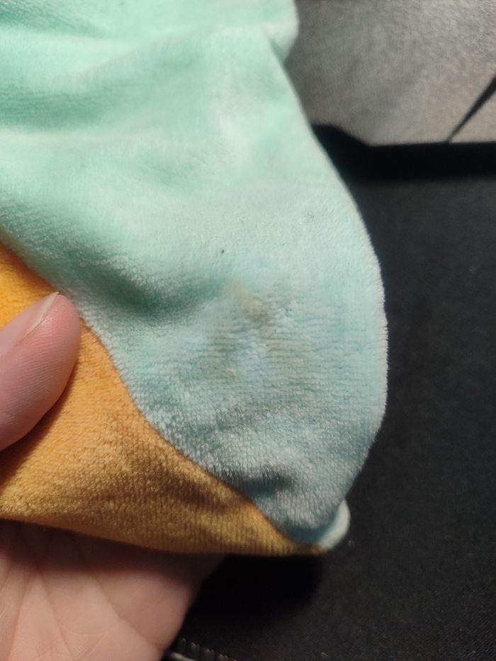 le bout du bonnet a le tissus altéré suite à des machouillements