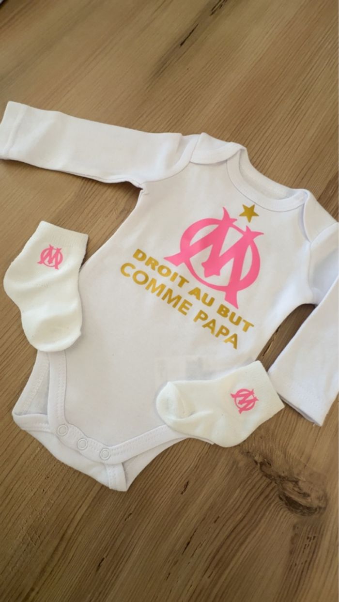 Ensemble bébé foot cadeau de naissance OM droit au but comme papa - photo numéro 2