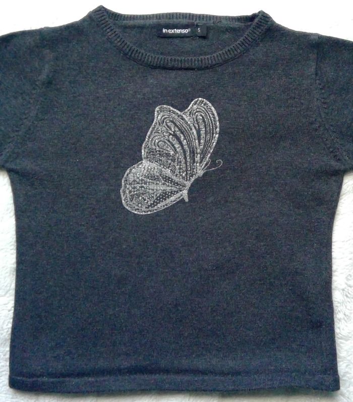 Pull fin gris en 5 ans Marque : in extenso Caractéristiques : papillon argenté sur le devant Envoi ou remise en mains propres sur Paris 13 ou 5