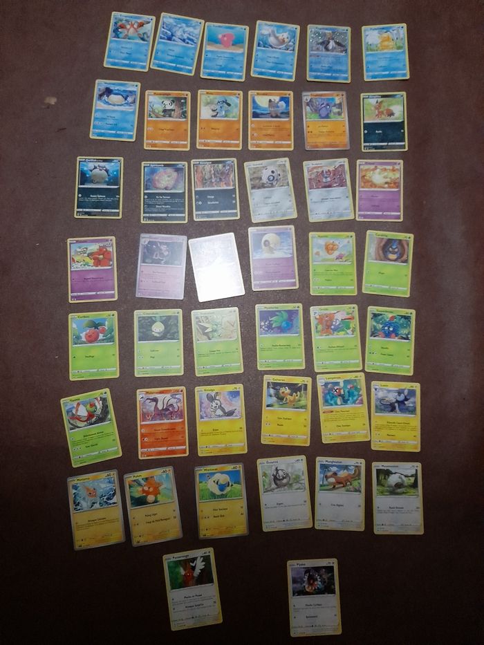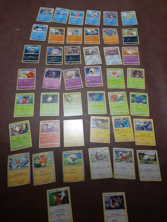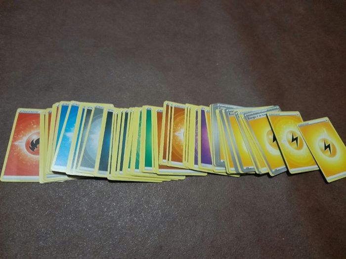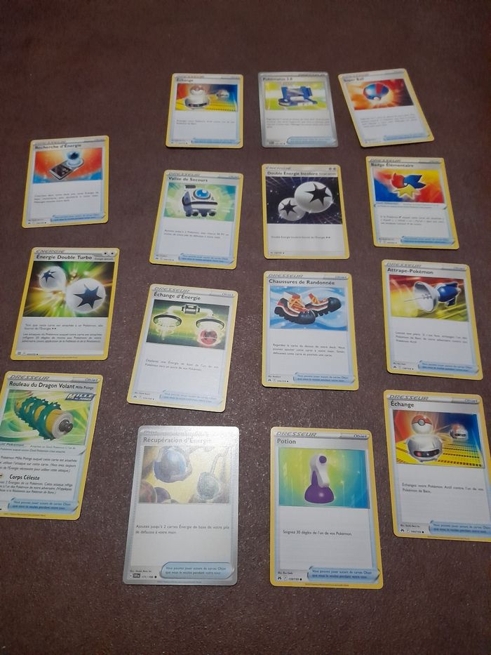 Lot de cartes pokemon composé de 6 boosters bouclier et épée ténèbres embrasées ouverts mais complets.il y a aussi un paquet de 90 cartes énergie.il y a aussi 44 cartes pokemon dont 1 holographique.enfin il y a 15 cartes objets.pas de doubles sauf dans les cartes énergie.toutes sont en très bon état