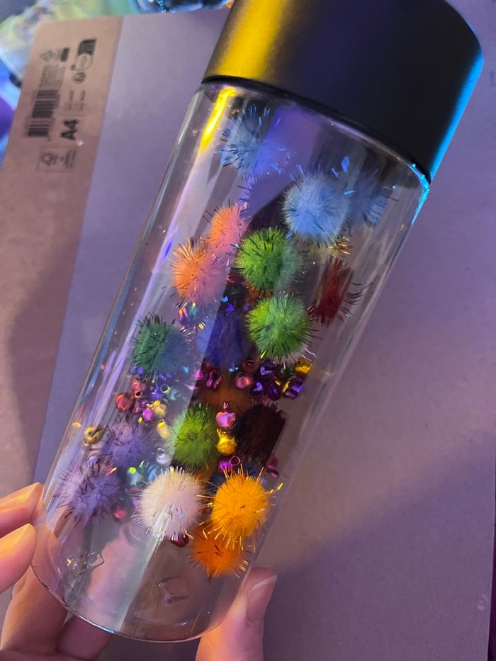 Cette jolie bouteille solide est un outil apaisant et captivant pour accompagner aussi bien les tout-petits que les plus grands, avec ses couleurs et ses petits grelots.