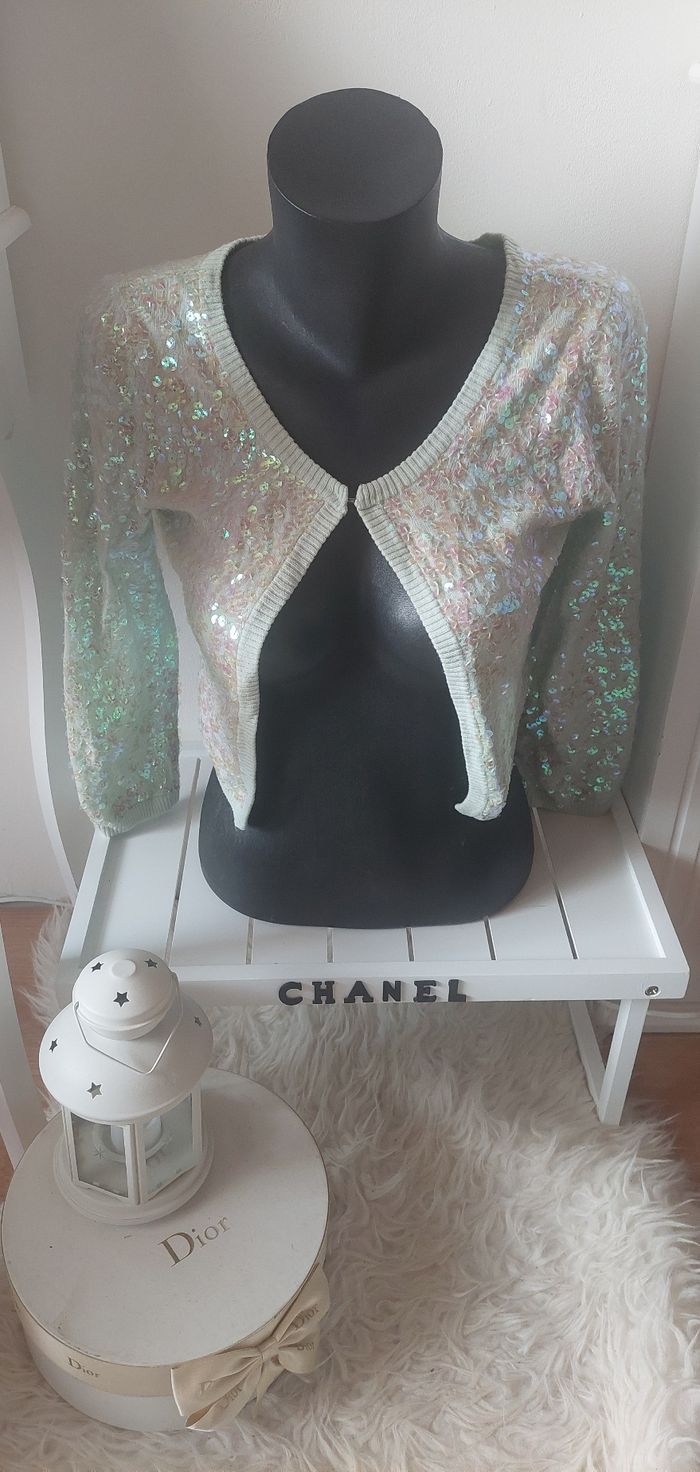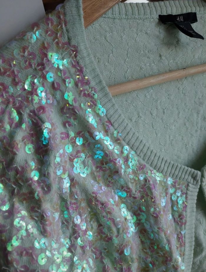 Gilet/cardigan paillettes sequins brillants vert menthe T.S H&M TBE 🪩 - photo numéro 2
