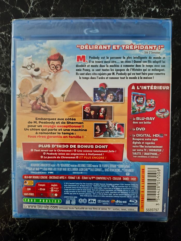 Film M. Peabody et Sherman (2014 - Mr. Peabody & Sherman) en très bon état. Animation, Aventure et Famille de Rob Minkoff avec les voix (VO) de Ty Burrell, Max Charles, Ariel Winter, Allison Janney et Stephen Colbert.