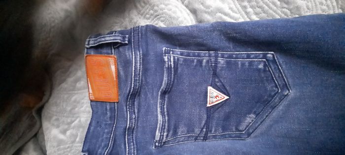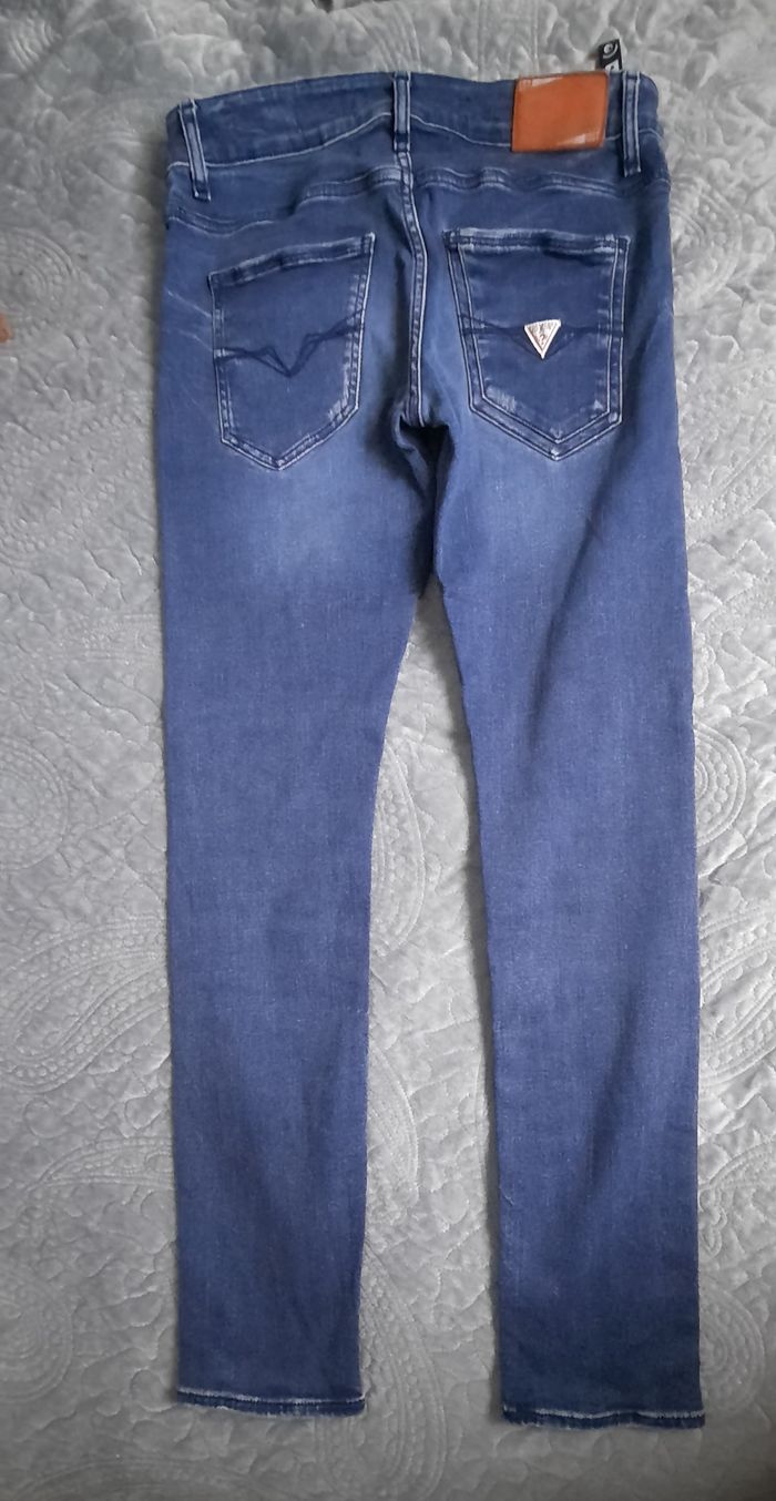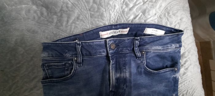 - Jeans skinny Guess Homme Bleu Jean. Authentique Vetement de ville de la marque Guess - design streetwear/sportswear, logo de la marque sur étiquette (PO C 2020 3 MA01 2019 6293), 98% coton 2% élasthanne, fermeture avec zip et 1 bouton, ceinture à passants, 2 poches devant et dos, Longueur taille -bas 101 cm et entrejambe-bas 81 cm, largeur taille 39cm, largeur bas jambe= 14 cm, longueur taille-entrejambe = 23 cm