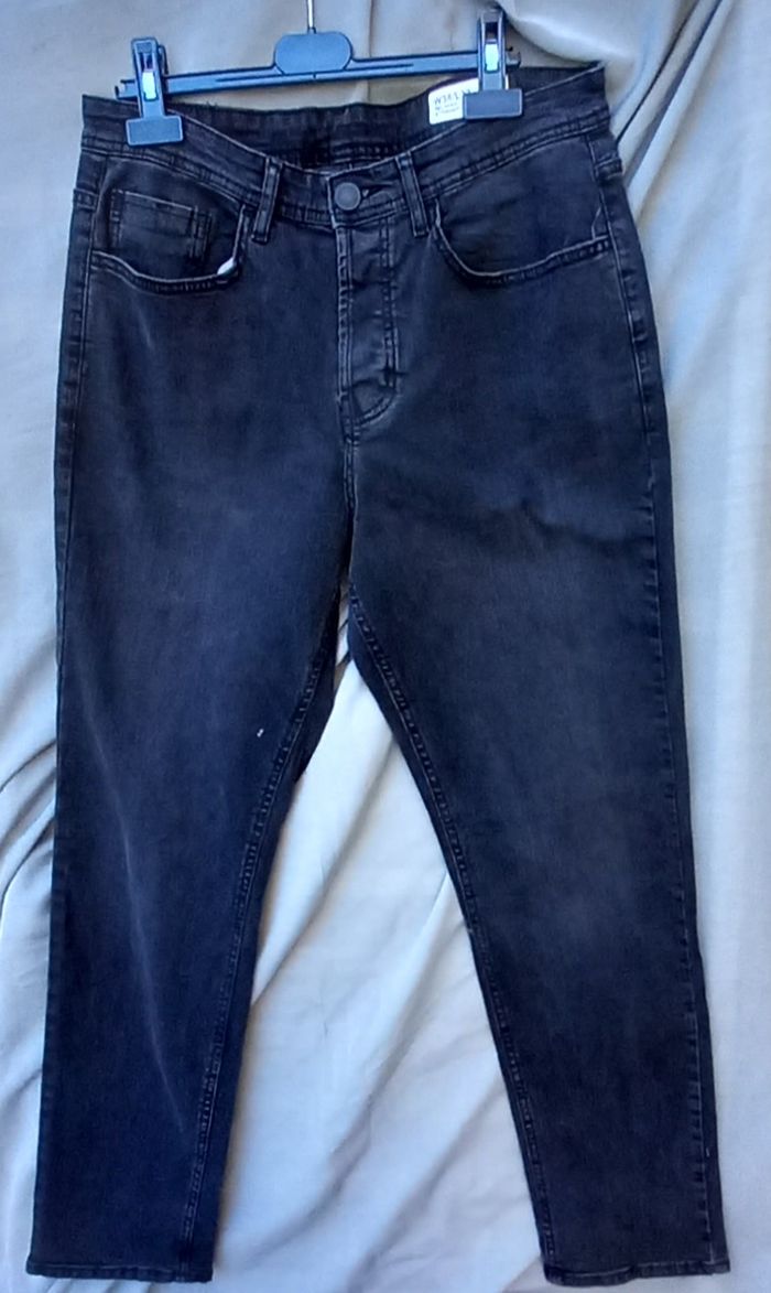 - Jeans Denim & Co coloris noir, ceinture avec passants, fermeture boutons, 5 poches, composition 99% coton 1% élasthanne, Largeur taille = 40 cm, largeur bas jambe= 18 cm, Longueur taille-Bas 106 cm et entrejambe-bas 78 cm, longueur taille-entrejambe = 28 cm