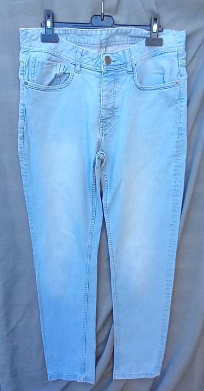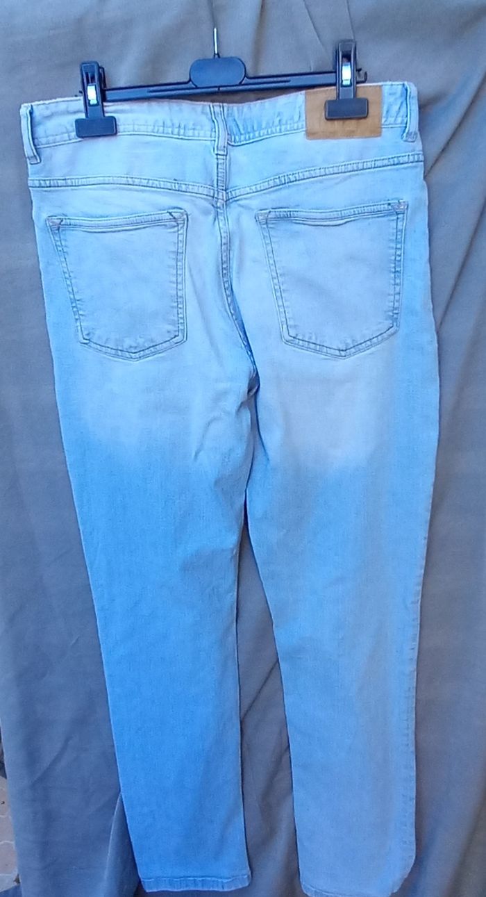 - Jeans Denim & Co coloris bleu ciel, ceinture avec passants, fermeture boutons, 5 poches, composition 99% coton 1% élasthanne, Largeur taille = 41 cm, largeur bas jambe= 16 cm, Longueur taille-Bas 107 cm et entrejambe-bas 81 cm, longueur taille-entrejambe = 27 cm