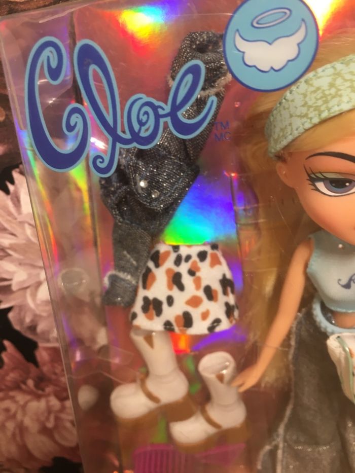 La poupée Bratz Cloé est livrée avec une veste, une jupe, un sac à main, 2 paires de chaussures et une brosse à cheveux. Cloé, son truc à elle, ce sont les imprimés animaux et les tissus pailletées ! Ses amis la surnomme “Angel” car ce c’est qu’elle est : un ange.