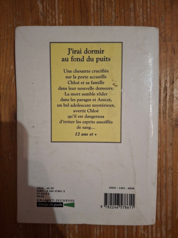 Vends le livre "j'irai dormir au fond du puits" de Gudule, à partir de 12 ans 2 e
