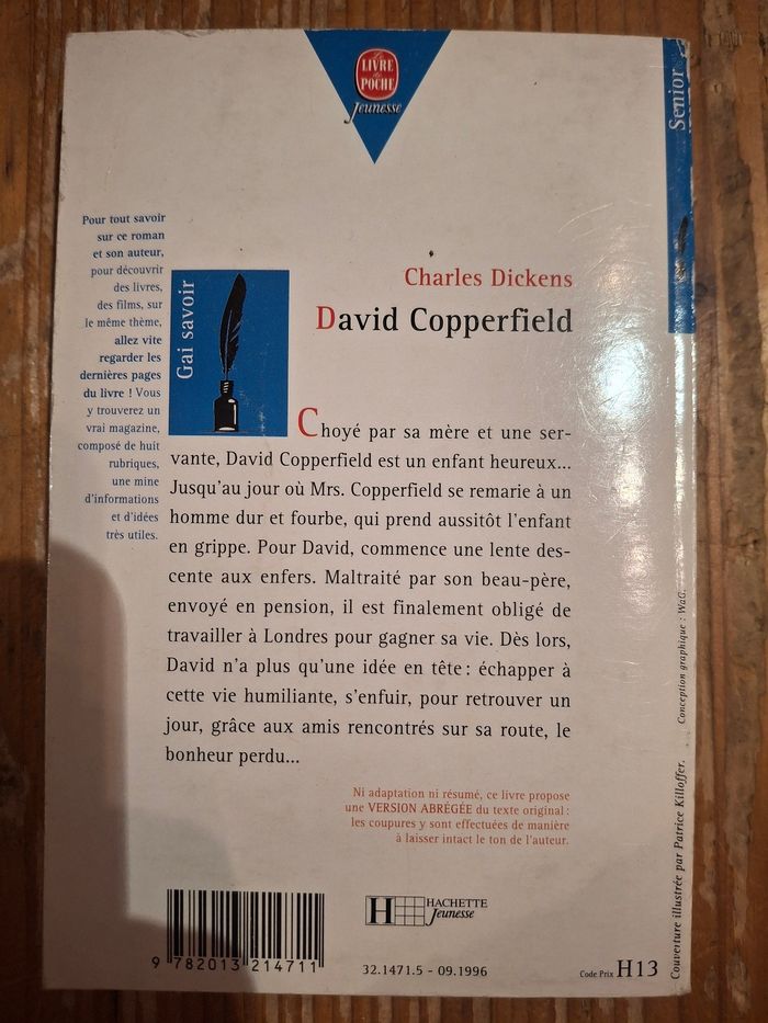 Vends le livre "David Copperfield" avec un dossier à la suite du roman 2 e