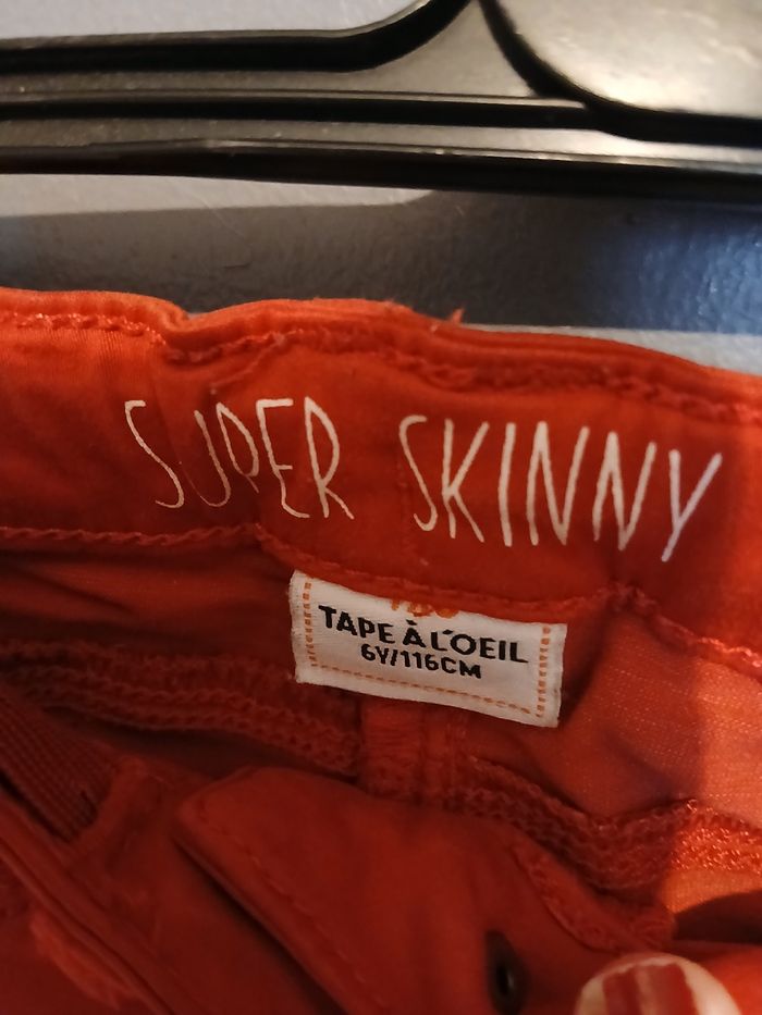 Skinny fille - Taille 6 ans 🔹 État : Très bon état, porté quelques fois seulement. 🔹 Couleur : Rouge 🔹 Marque : Tape à l'œil 📦 Envoi rapide et soigné