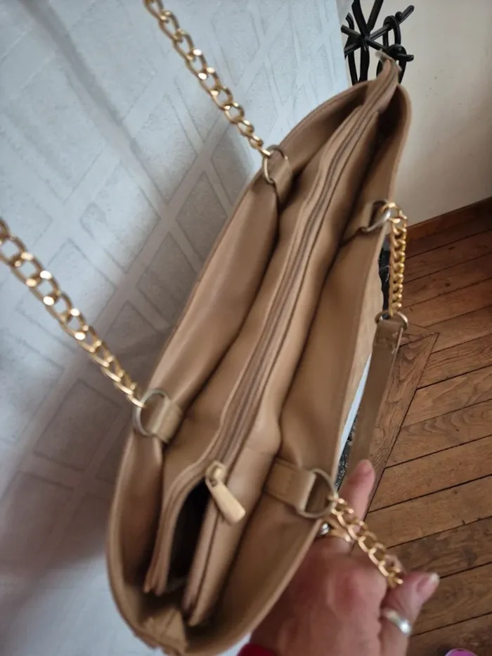 ⬇️mes autres annonces de sac 👉 #cg89sac un très joli sac à main dans les tons camel, avec des chaines dorées pour les anses. A porter en toute circonstance. Il mesure 40 cm de largeur, 26 cm de hauteur et 11 cm de profondeur. très bon état #sacamain #sac #fete #chaine #cadeau