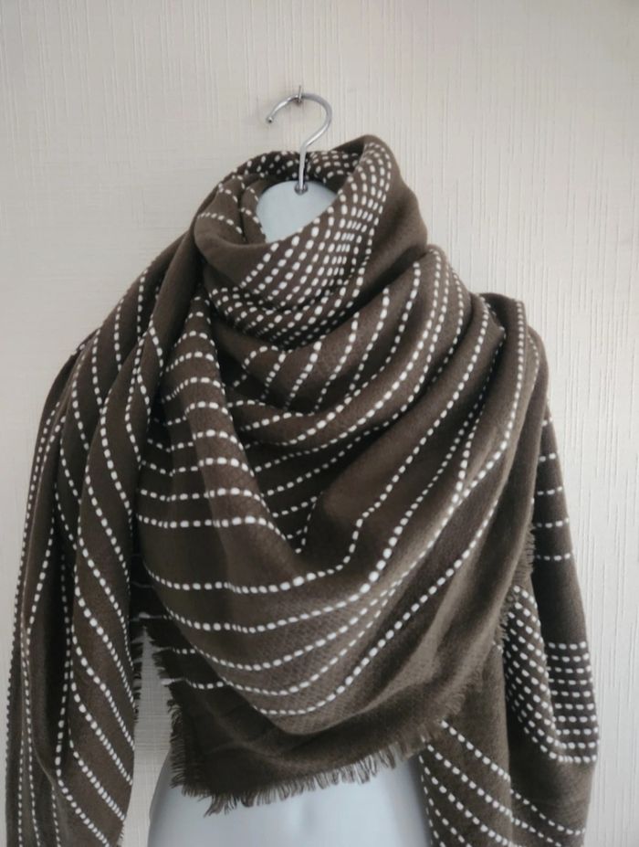 Écharpe kaki et blanche oversize neuve - photo numéro 3