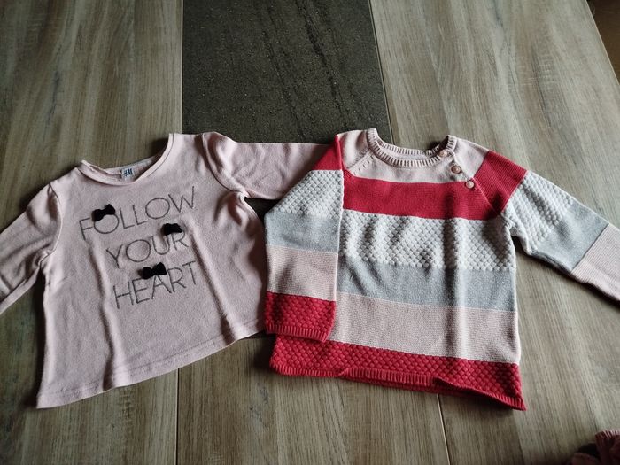 Lot de 2 pulls H&M, un rose pâle et un rayé. Taille 18 mois, très bon état.