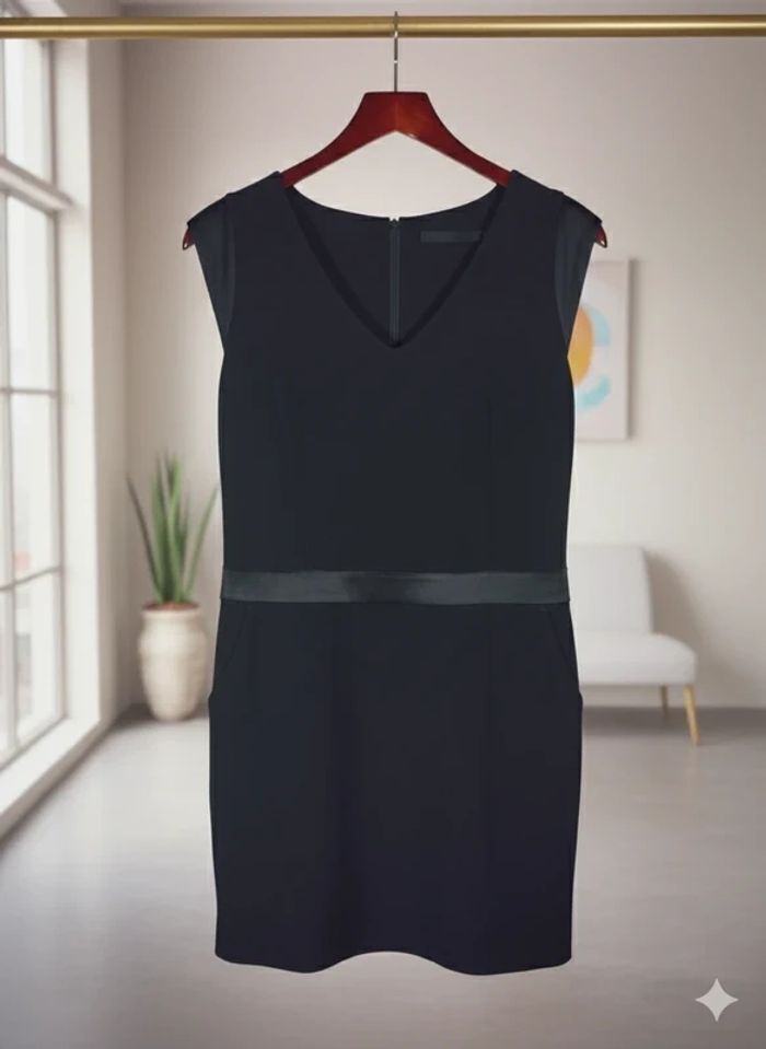 Elle présente des détails subtils et chics, notamment la bande satinée à la taille qui structure la silhouette