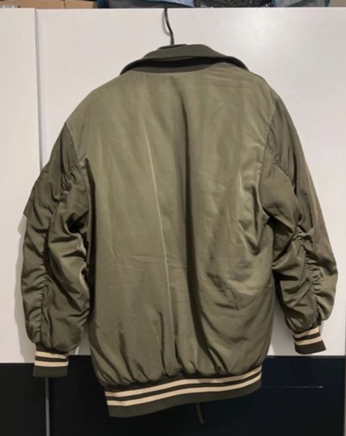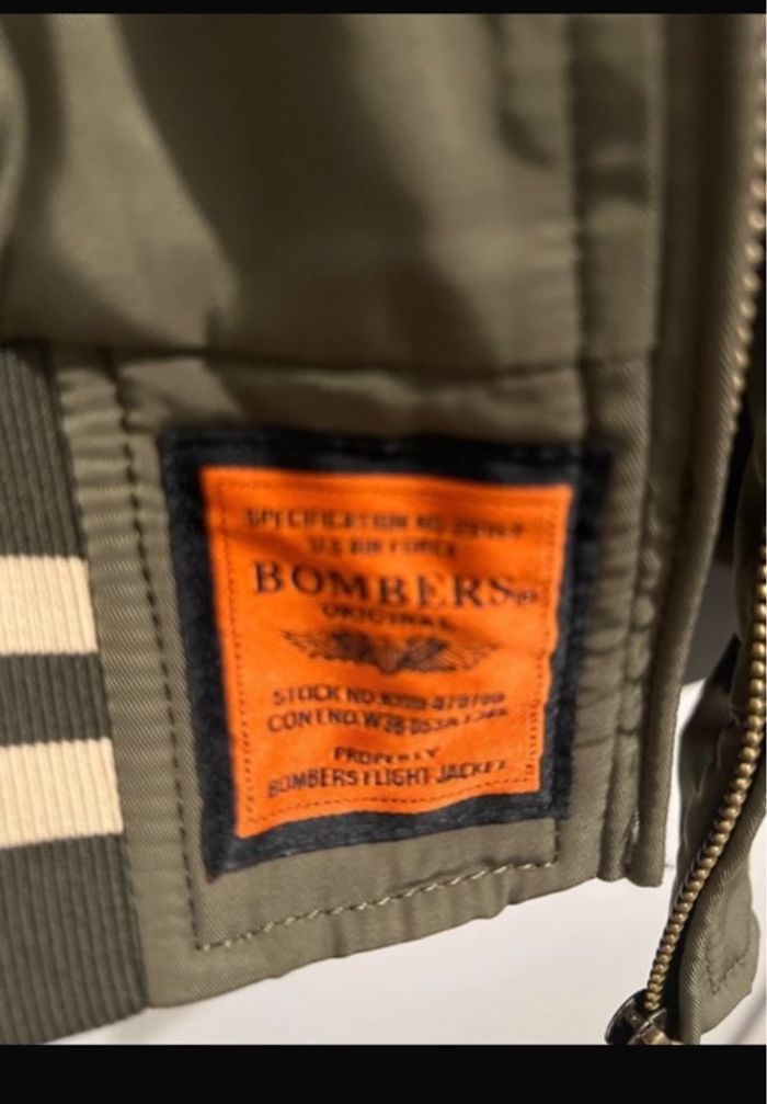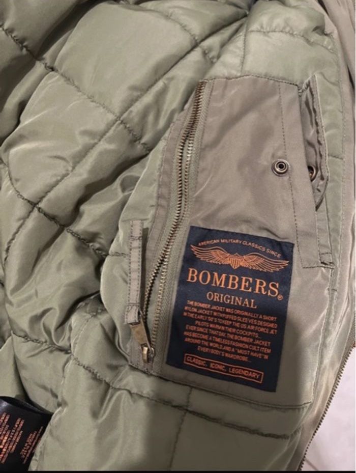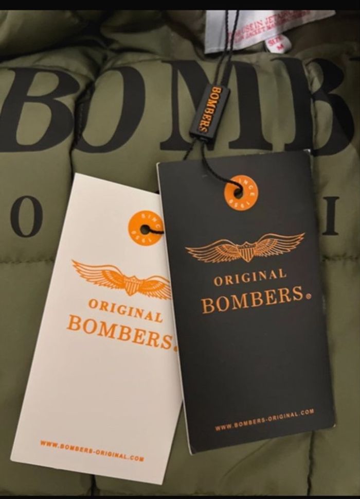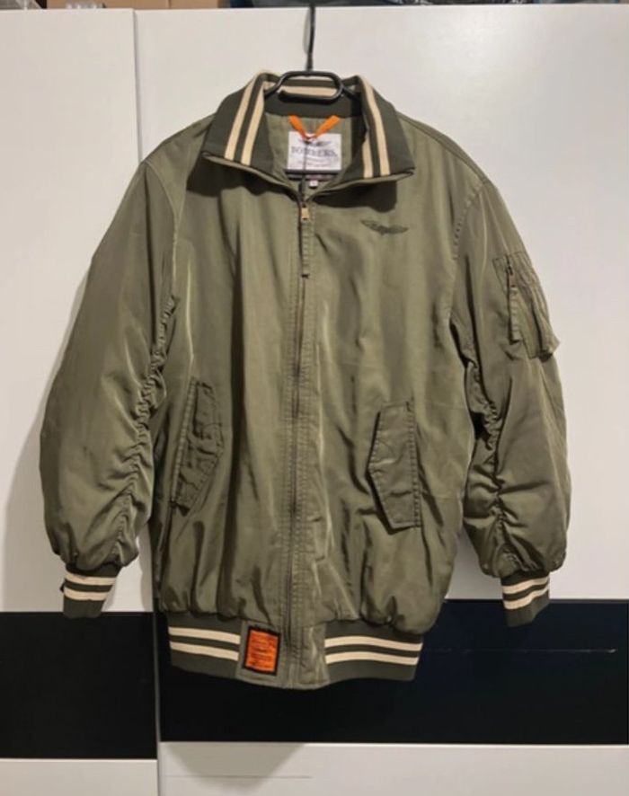 Authentique et emblématique blouson Bombers Neuf avec étiquette Couleur kaki /vert olive Style : blouse aviateur , matelassé Détails: fermeture éclair centrale , poche zippée sur la manche, poches latérale État: Neuf jamais porté Saison :hiver