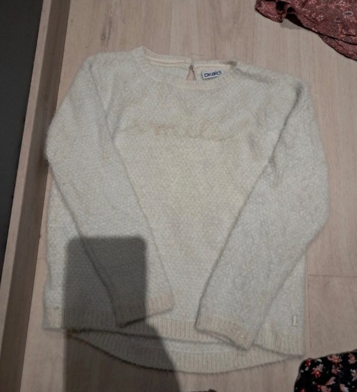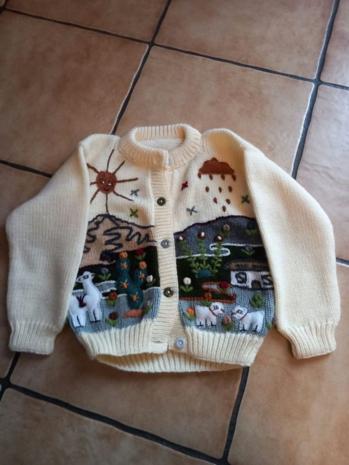 1 gilet rose lapine jamais porté neuf sans etiquette 3-4ans mais taille comme 4 et taille grand 1 gilet jaune péruvien neuf jamais porté 4ans 1 pull tape à l'oeil bleu marine 5ans Neuf passé 1x à la machine 1 pull tape à l'oeil torsadé beige très chaud porté 2 ou 3x tbe 1 pull Okaïdi 4ans – TBE, porté 4/5x 1 pull Tissaia rose motif souris 4ans – TBE, porté 4/5x 1 robe tunique en laine Tape à l’œil rouge 4ans – TBE, portée 4/5x 1 gilet marron la compagnie des petits porté 4 ou 5 fois 4ans tbe 🌸 Points forts : Beaucoup de pièces en excellent état voire neuves Lot dépareillable et recomposable pour créer plusieurs ensembles Maison non-fumeur, sans animaux, première main 👉 D’autres vêtements dont robes neuves dispo sur mon profil : #laul57fille4ans et #laul57fille5ans