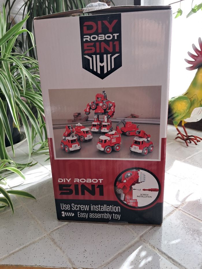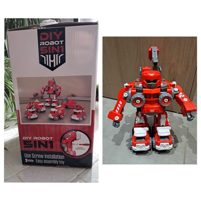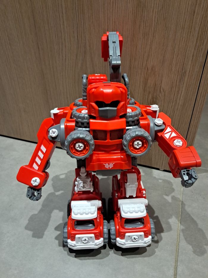 🚒 Robot Transformer 5-en-1 DIY – Camions de pompiers (130 pièces) son et lumière 🧰 À assembler/réparer avec vis & tournevis (inclus) Transformez un grand robot de 30 cm en 5 camions de pompiers ! ✔️ 130 pièces ✔️ Avec lumière rouge & sons de camion de pompier ✔️ Rangement intégré pour le tournevis ✔️ Fonctionne avec piles (fournies) ✔️ Plan d’assemblage + boîte inclus 🆕 État : neuf La boîte a uniquement été ouverte, le jouet n'a jamais été utilisé. Je remets tout soigneusement dans la boîte pour l’envoi. 🏠 Maison non fumeur, première main, pas d’animaux. 🎁 D’autres jouets dont neufs sur #laul57jouet