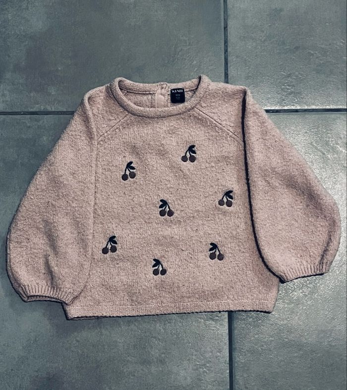 Pull en maille mousseuse avec broderies cerises Kiabi 18 mois