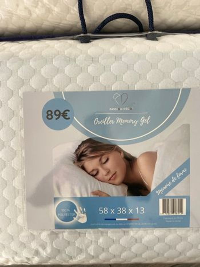 2 oreillers à mémoire de forme gel (58/38/13) neuf
