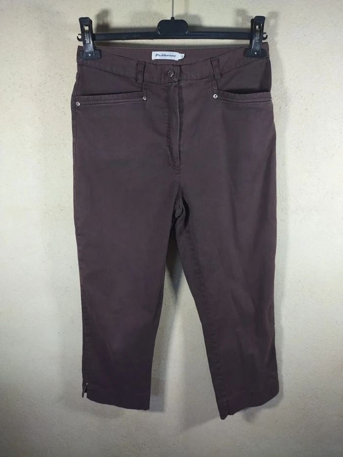 Pantacourt Élégant Taille -40 - Marque : Fassianos Prix : 15€ Pantacourt Fassianos couleur marron foncé. Coupe chic et confortable, parfait pour le bureau ou un look décontracté. Disponible immédiatement Envoie rapide et soigné 🩷Remise activé de -30% dès 3 articles achetés 🩷