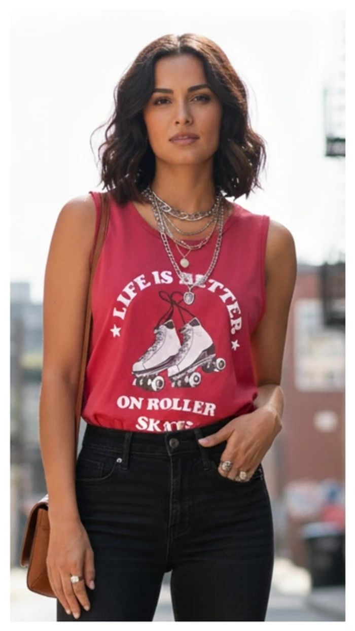 ⭐ Pièce polyvalente et tendance ! Débardeur Rollers Taille : L Très bon état Prix : 5€ Marque : Jennifer Disponible immédiatement Envoie rapide et soigné 🩷Remise activé de -30% dès 3 articles achetés 🩷