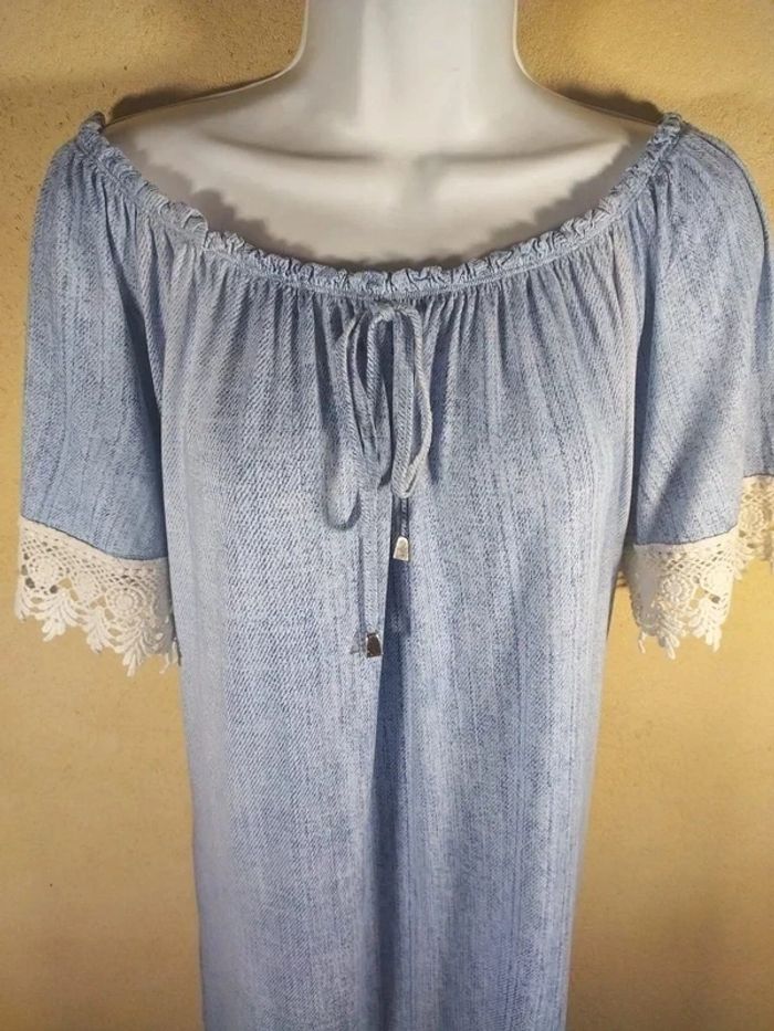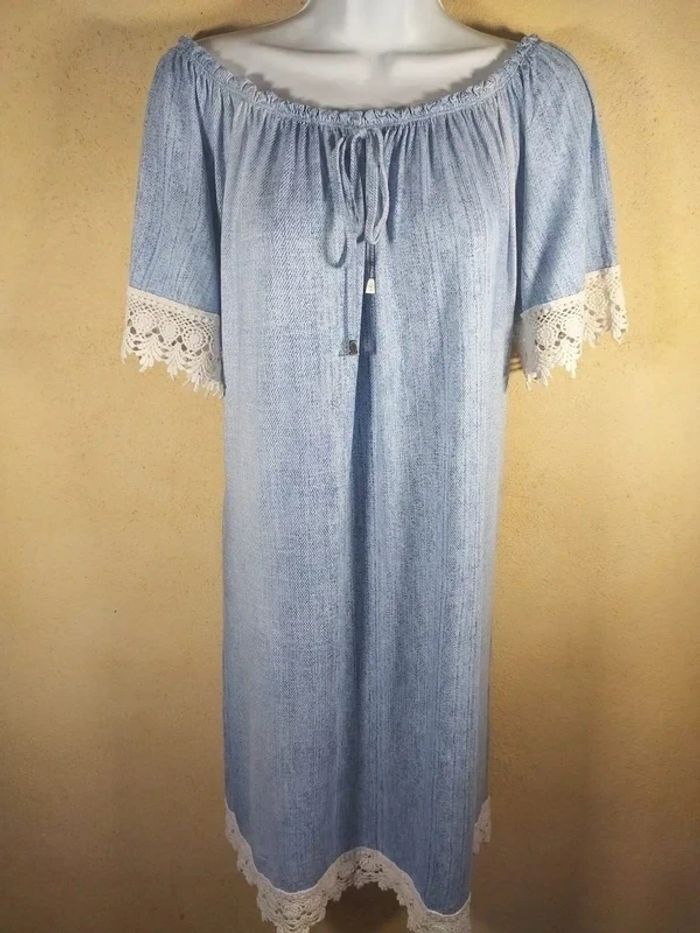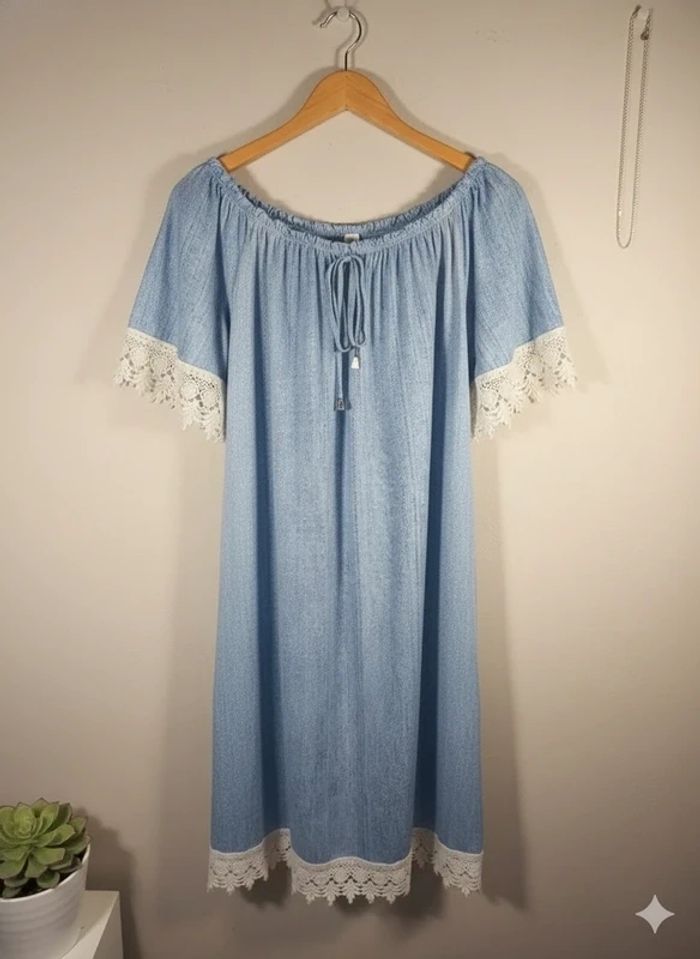 ✨ Robe bohème chic ✨ Marque : Rainbow Taille : 40/42 Prix : 14€ Très bon état Adorable robe bleu ciel, tissu léger et col bateau élastique (peut se porter épaules dénudées). Détails de dentelle blanche délicate aux manches et à l'ourlet. Idéale pour les vacances, la plage ou un look estival décontracté. Disponible immédiatement Envoie rapide et soigné 🩷Remise activé de -30% dès 3 articles achetés 🩷