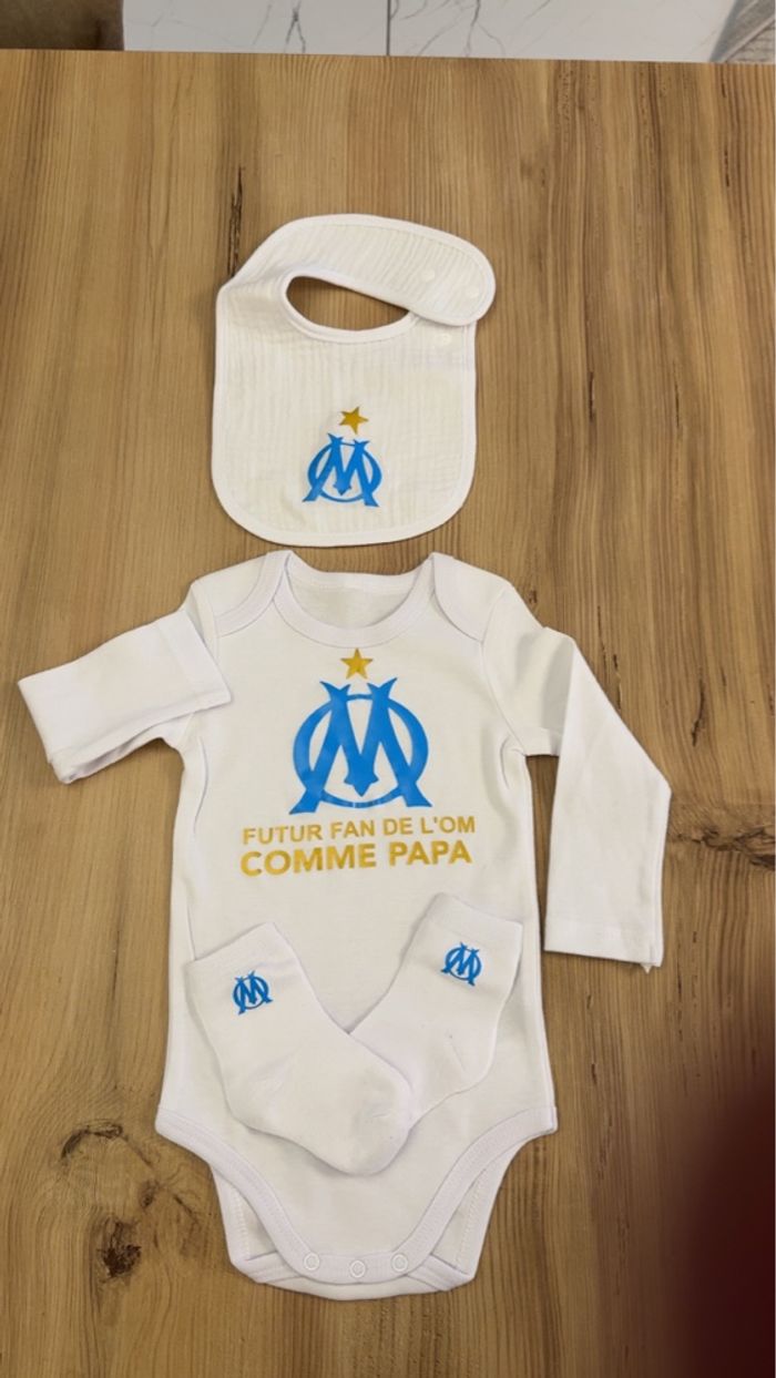Magnifique petit ensemble plein de douceur et ultra craquant pour habiller bébé avec style foot Marseille bb ✨
