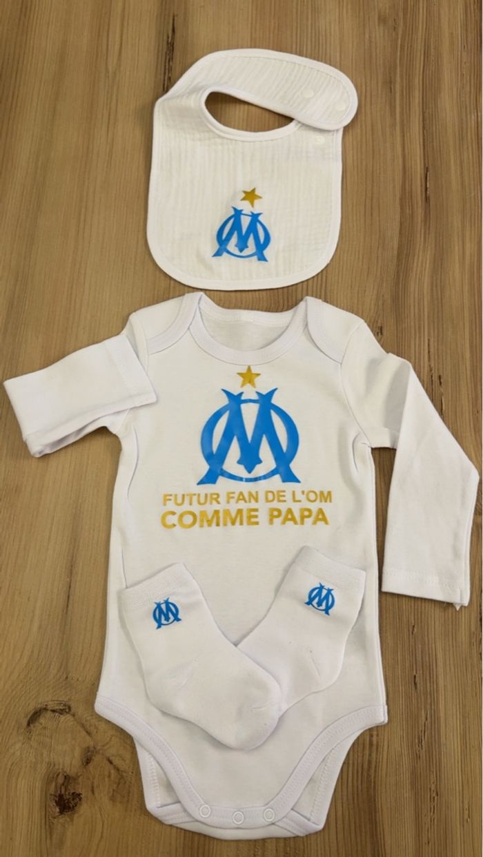 Ensemble bébé foot cadeau papa OM Marseille - photo numéro 1