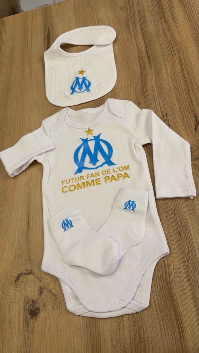Ensemble bébé foot cadeau papa OM Marseille - photo numéro 3