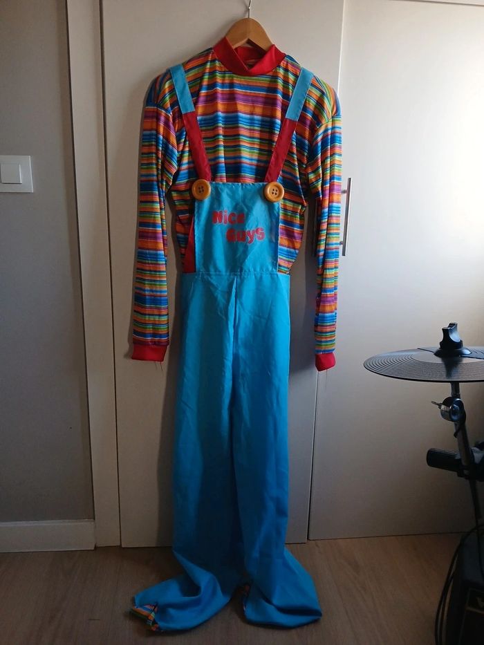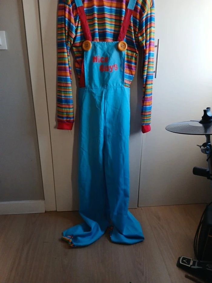 Disfraz payaso camisera rayas , pantalon peto azulino