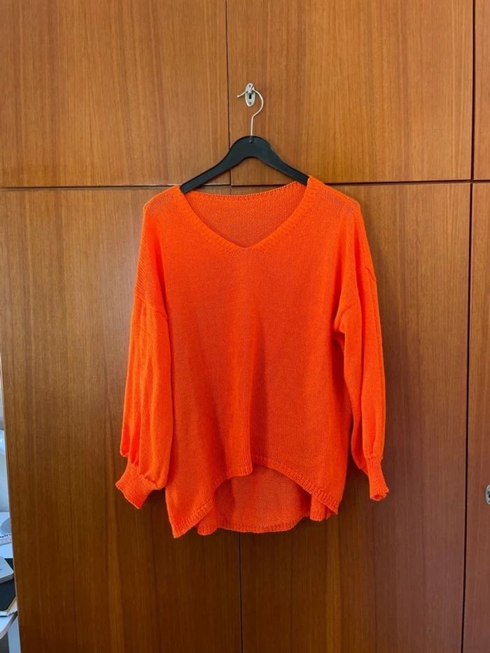 Knalliger Pullover aus einer kleinen Boutique. Oversized geschnitten Paket Preis mit den übrigen Teilen. Siehe letztes Bild. sofern nicht vorher einzeln verkauft :) Länge vorne: ca 58 cm Länge hinten ca 71 cm Weite Achsel ca 63 cm