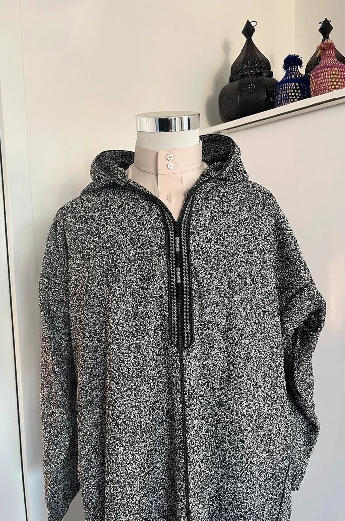 Djellaba marocaine 🇲🇦 hiver Premium Adza chiné noir taille 2XL