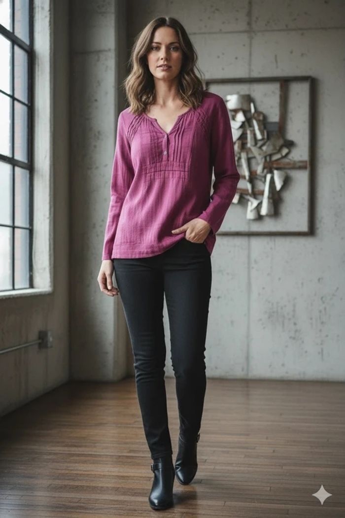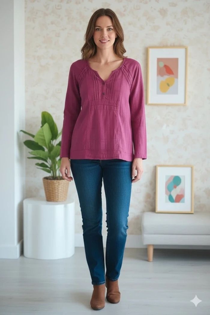 💜 Chemisier/ Blouse /Tunique💜 100% Coton - Couleur Tendance ! Prix : 6€ Bon état Taille : L Couleur vibrante et chic Joli col tunisien avec quelques boutons sur l'encolure. Détails de plis délicats au niveau de la poitrine et des épaules qui structurent la coupe et ajoutent une touche d'originalité. Coupe droite et confortable, idéale pour toutes les saisons. 💡 Style : Parfait pour un look décontracté chic, il se marie aussi bien avec un jean qu'avec un pantalon plus habillé. Un essentiel à avoir dans son dressing ! Disponible immédiatement Envoie rapide et soigné 🩷Remise activé de -30% dès 3 articles achetés 🩷