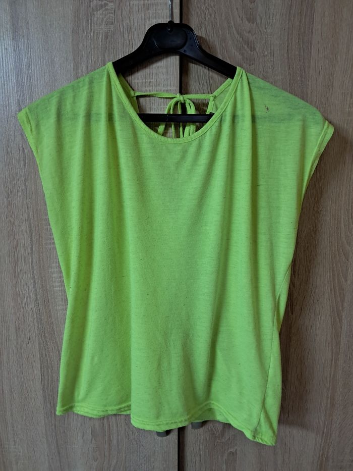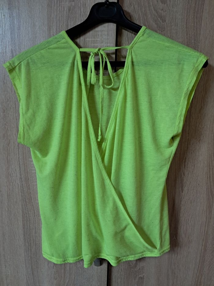 Haut Jennyfer taille M fluo Dos ouvert avec lacet Beaucoup porté donc tissu abîmé et une tâche sur l'épaule Réductions lots activées