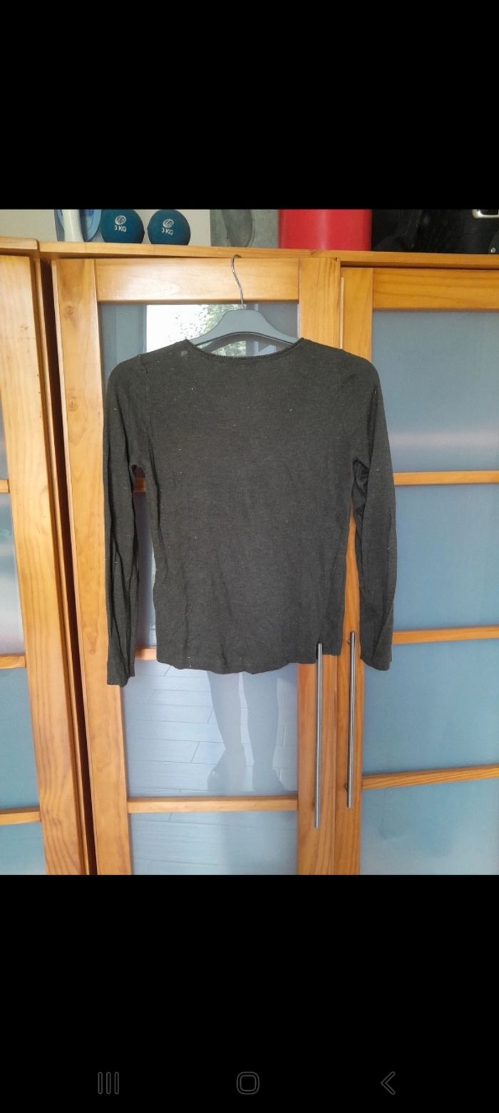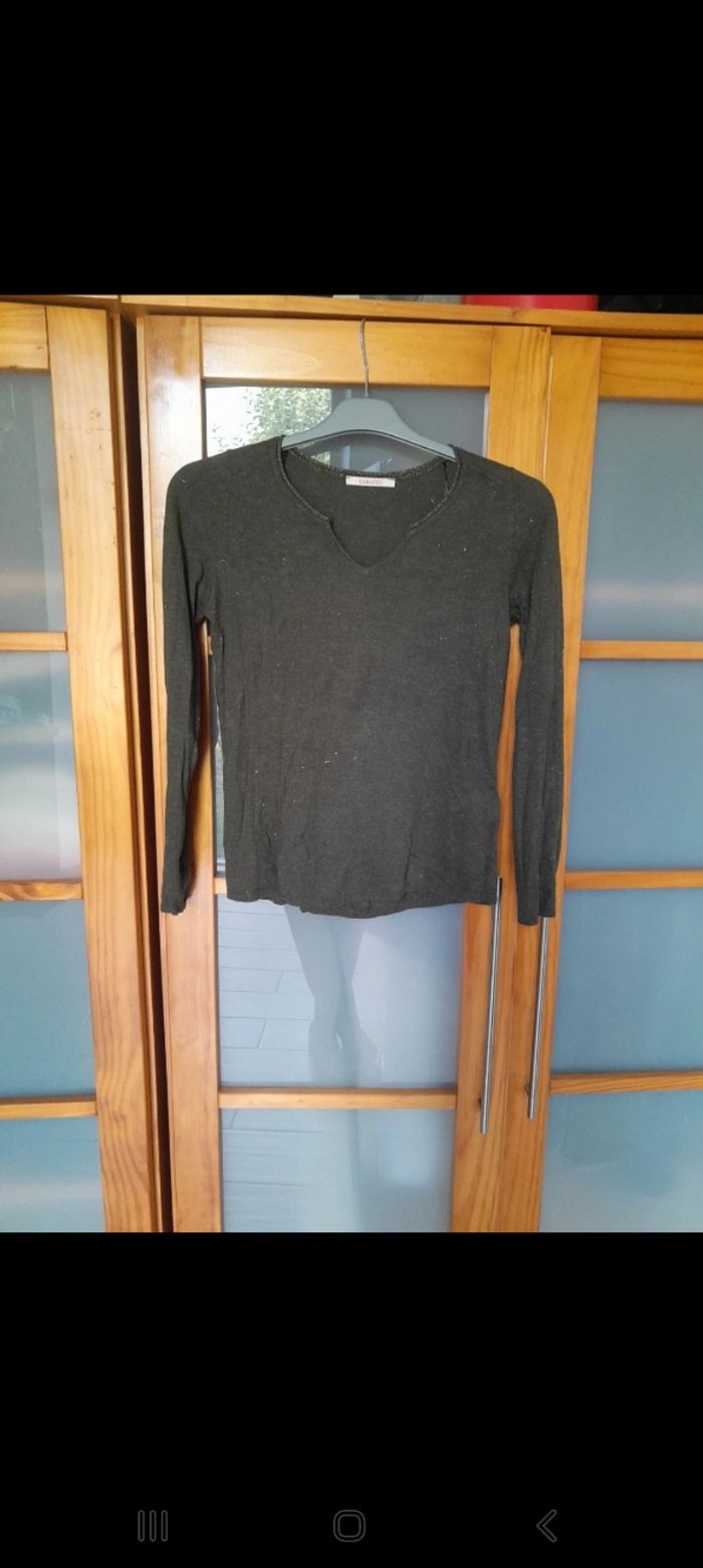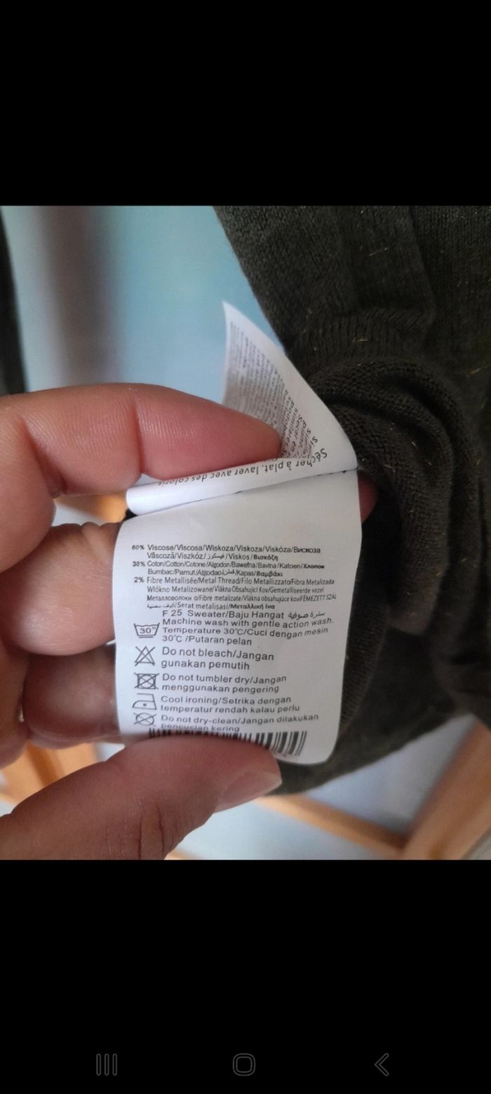 Pull léger kaki et fils dorés Très doux Non porté