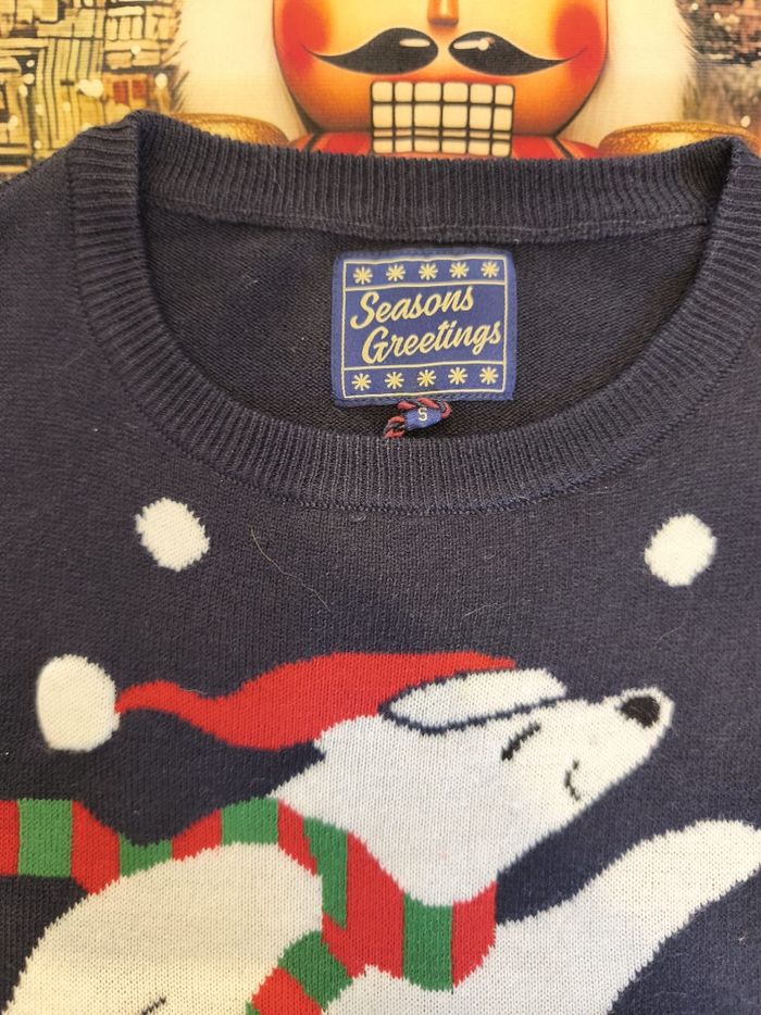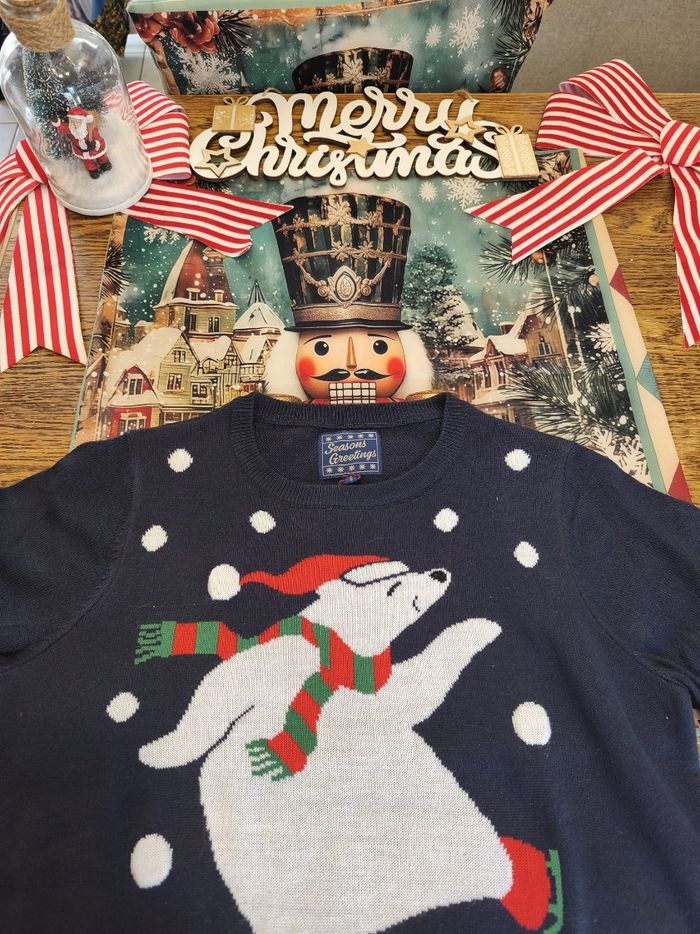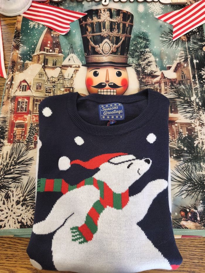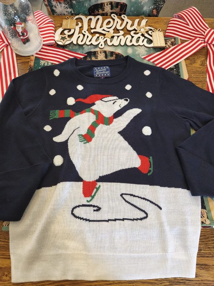 ❄️ Pull de Noël – Ourson Patineur Professionnel ❄️ (Taille S– Neuf, étiquette toujours accrochée, pas encore testé sur glace) Attention ! 🌟 Voici le pull qui apporte plus de fraîcheur qu’une bise du Pôle Nord. Avec son adorable ourson blanc en plein patinage artistique — triple axel non garanti mais mignonnerie certifiée — et ses flocons qui tombent comme des applaudissements, ce pull est prêt à faire fondre tous les cœurs (mais pas la glace, heureusement). ✨ Caractéristiques dignes d’un champion : Neuf avec étiquette : même l’ourson n’a pas encore transpiré dedans. Taille S : confortable pour applaudir ses performances. Design “je maîtrise la glisse mieux que toi après deux verres de vin chaud”. Parfait pour se sentir cosy tout en restant stylé(e). 🎄 Idéal pour : Les soirées de Noël où tu veux impressionner sans te casser la figure. Donner des vibes “hiver magique” sans avoir froid aux doigts. Offrir (ou t’offrir) un petit morceau d’enfance enneigée. Ne laisse pas filer ce petit ourson… lui, il glisse seulement sur la glace ! ⛸️🐻❄️