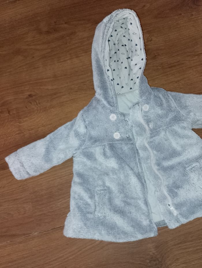 Manteau sucre d'orge 18 mois Quelques bouloche a l'intérieur Taché sur l'intérieur droit